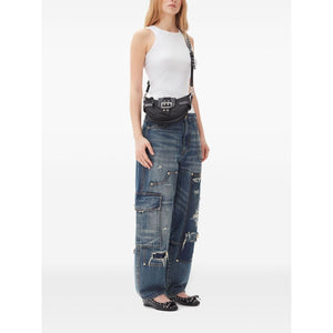 black recycled nylon embossed logo to the front front buckle fastening top zip fastening detachable shoulder strap adjustable detachable shoulder strap main compartment This piece comes complete with a protective dust bag. This item is made from at least 50% recycled or upcycled materials. For recycled synthetic clothing products, we highly recommend using a microfibre-catching washing bag to ensure that no microplastics that can pollute water are released in the process. We've partnered with Good On You — an independent agency that rates how brands perform in relation to their impact on the planet, people and animals, with a multi-criteria rating simplified to a five points scale. In order to be awarded our conscious label, larger brands need to score a minimum of four out of five ('Good'), while smaller brands must score at least three out of five ('It's A Start'). This item comes from a brand rated three out of five ('It's A Start') by Good on You at the time it was added on FARFET Bucky small nylon crossbody bag Size and Fit - Width 9,06 in / 23 cm Height 6,5 in / 16,5 cm Depth 2,36 in / 6 cm Strap 7,87 in / 20 cm