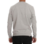 Frankie Morello Gray Cotton Crewneck Pullover Sweater