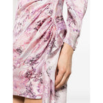 light pink/multicolour silk snakeskin print wrap design keyhole neck side zip fastening three-quarter length puff sleeves open back draped detailing at the hip ruched skirt straight hem above-knee length Floral print silk short dress Size and Fit - This piece fits true to size. We recommend you get your regular size. Model is 1,75m / 5ft 8in wearing size 36 (FR)