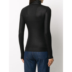 black roll neck long sleeves slim fit Lurex high-neck sweater Size and Fit - This piece fits true to size. We recommend you get your regular size. Model is 1,75m / 5ft 8in wearing size 1 (NUM)