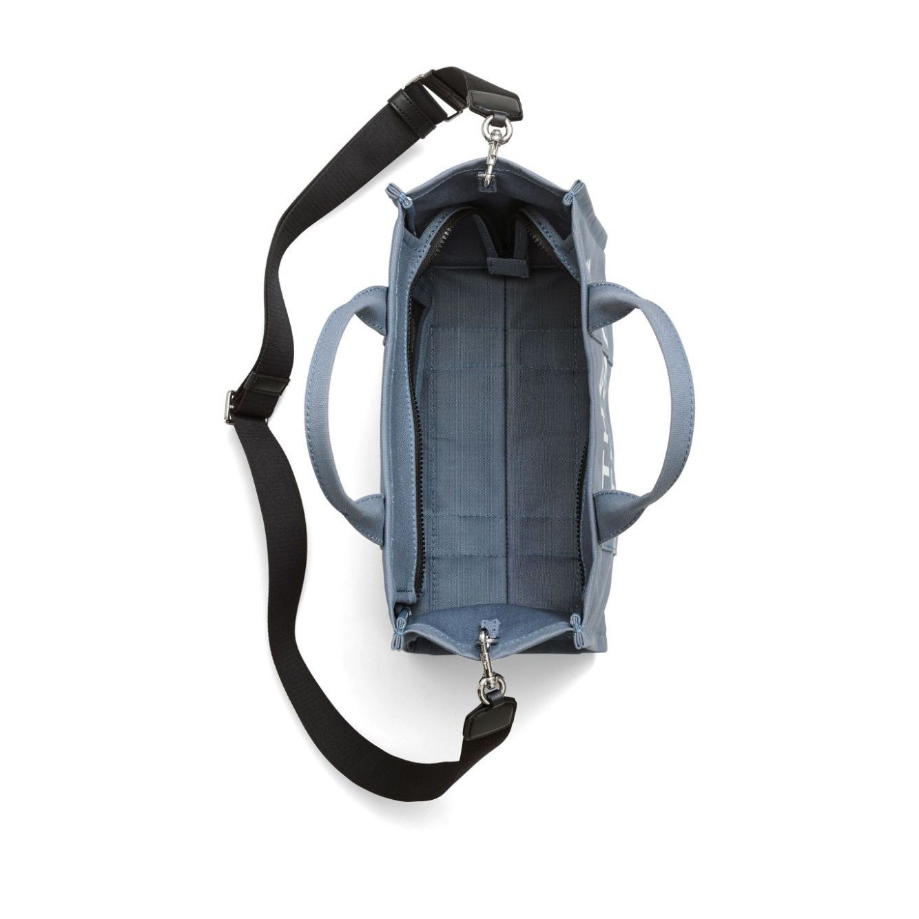The Medium Tote bag from Marc Jacobs featuring light blue, canvas, logo print to the front, two rolled top handles, logo patch to the rear, adjustable detachable shoulder strap, top zip fastening, main compartment and internal slip pocket. The Tote Bag medium canvas tote Size and Fit - Width 13,39 in / 34 cm Height 9,45 in / 24 cm Depth 5,91 in / 15 cm Handle 3,94 in / 10 cm Strap 25,59 in / 65 cm.