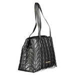 Elevate your ensemble with the timeless elegance of Valentino Bags. This sleek, black handbag is the perfect accessory for the modern fashionista on the move. Designed with practicality in mind, it features two comfortable shoulder handles for ease of carrying. The spacious central pocket, coupled with an additional internal pocket, keeps your essentials organized while providing quick access to your phone with dedicated internal spaces. The zip and magnet closure ensures your belongings are secure with a dash of sophistication. The contrasting details and the iconic Valentino logo add an air of luxury, while the commitment to sustainability is evident with its recycled materials. Make a bold statement as you step out with this trendy Valentino masterpiece.
