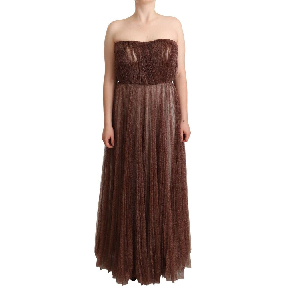 Dolce & Gabbana Metallic Bronze Polyester Maxi Gown Dress
