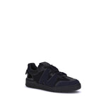 The Moschino leather and mesh Sneakers feature a sporty silhouette with a rounded toe, embellished with the leather letter M on the sides. The design is completed by the logo tongue and the practical lace-up closure.