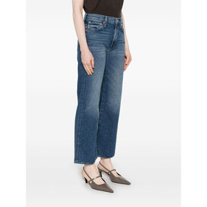 indigo blue front button and zip fastening belt loops classic five pockets whiskering effect The Dodger Ankle denim jeasn Size and Fit - This piece fits true to size. We recommend you get your regular size. Model is 1,75m / 5ft 8in wearing size 27 (WAIST CM)