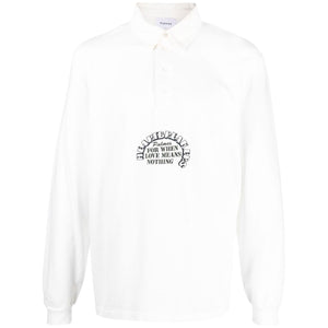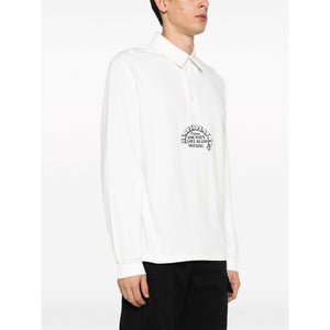 slogan-print pollo shirt from Palmes featuring off-white, organic cotton, classic collar, press-stud fastening, elasticated cuffs and straight hem. This item is made from at least 50% organic materials.. Learn more about what makes a product Conscious on our Conscious Criteria page. Logo organic cotton shirt Size and Fit - This piece fits true to size. We recommend you get your regular size. Model is 1,84m / 6ft 1in wearing size M