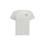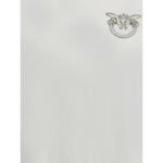 Pinko’s T-Shirt features a logo embroidered with rhinestones and pearls positioned on the left side of the front, adding a precious and refined detail that embellishes the simple and contemporary design of the garment.