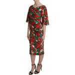 Dolce & Gabbana Red Floral Sheath Midi Silk Stretch Dress