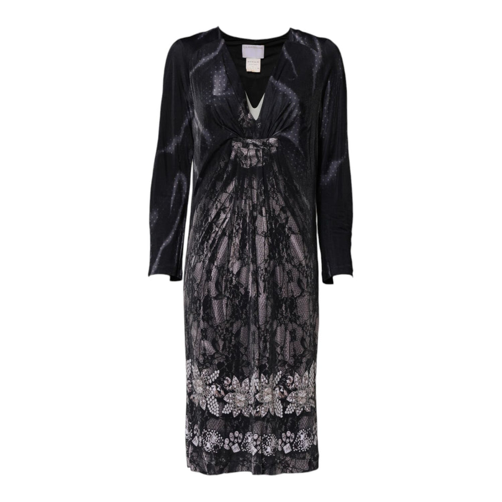 Roberto Cavalli Black Floral Viscose Sheath Midi Dress