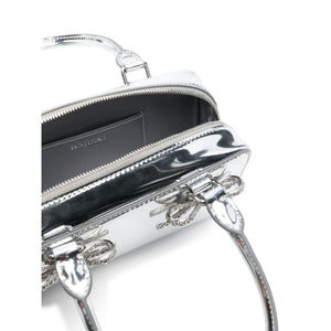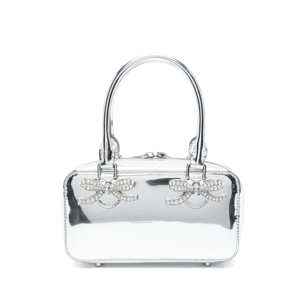 silver-tone two-way zip fastening two rolled top handles internal card slot metal feet Crystal embellished mini bag Size and Fit - Width 7,87 in / 20 cm