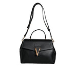 Versace Black Top Handle Grainy Calfskin Leather Crossbody Bag