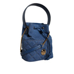 Versace Blue Quilted Denim Leather Crossbody Shoulder Bag