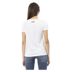 Unleash your fashion-forward spirit with the ‘Trussardi Action’ short sleeve t-shirt, a masterpiece blending comfort and chic. Its round neck and crisp white hue serve as a canvas for the striking front print that makes a bold statement in any setting. Crafted from a luxurious mix of cotton and viscose for unparalleled softness and breathability, this tee allows you to flaunt your style credentials with effortless sophistication.