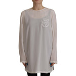 Dolce & Gabbana White Silk DG Logo Embroidered Long Sleeves Blouse