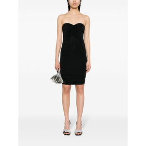 black stretch-design jersey texture adjustable neck strapless sleeveless adjustable slit straight hem unlined This piece can be styled in multiple ways. Fatal draping mini dress Size and Fit - This piece fits true to size. We recommend you get your regular size. Model is 1,75m / 5ft 8in wearing size S