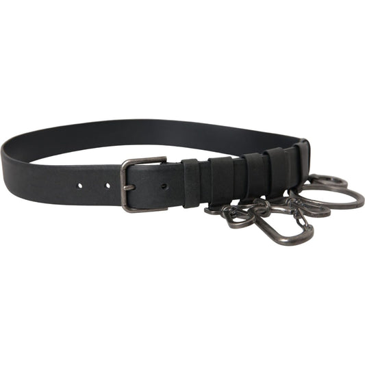 Dolce & Gabbana Black Leather Silver Metal Buckle Men Belt