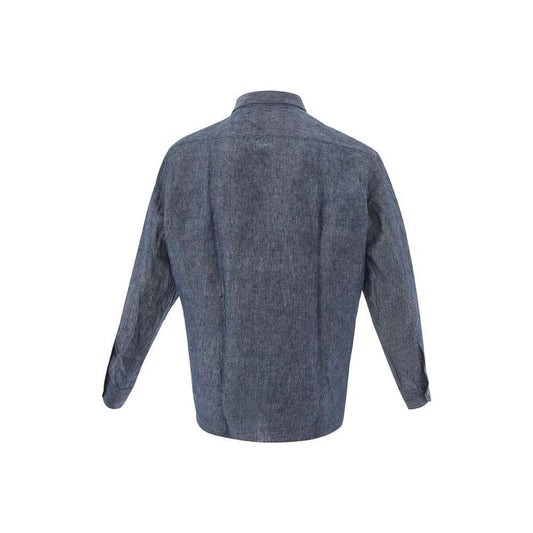 男士优雅亚麻蓝色衬衫