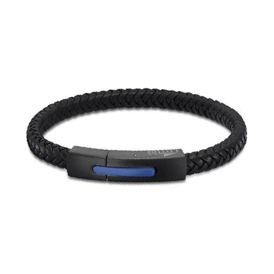 Dolce & Gabbana Blue White Leather Trimmed DG Engraved Silver Tone Clasp Bracelet