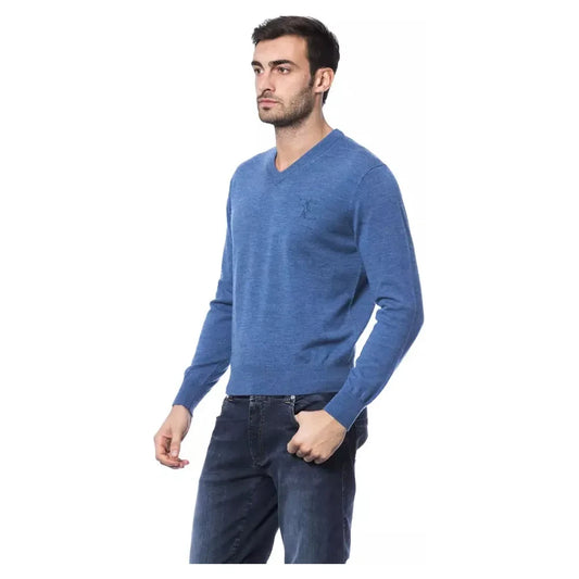 优雅的浅蓝色棉混纺圆领毛衣