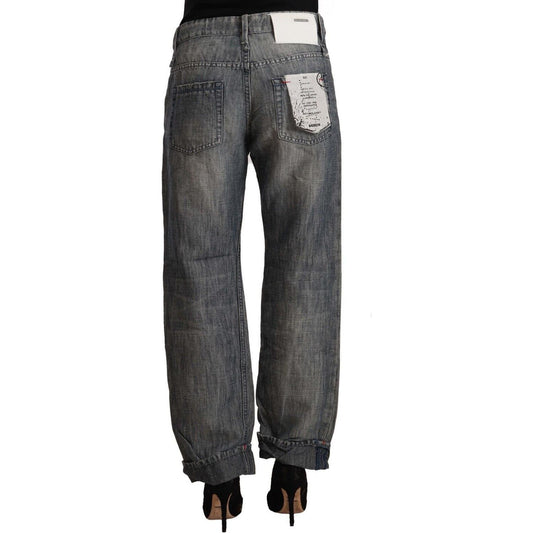 时尚灰色直筒剪裁苎麻棉牛仔裤