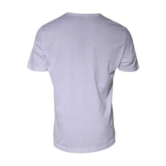 Dolce & Gabbana White Cotton Printed Ascot Collared T-shirt