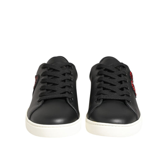 Dolce & Gabbana Black White Leather Crystal Heart Sneakers Shoes