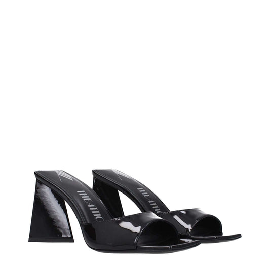 The Attico Black Leather Platform Sandals