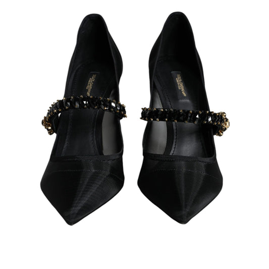 Dolce & Gabbana Black Mesh Mary Jane Crystal Heel Pumps Shoes