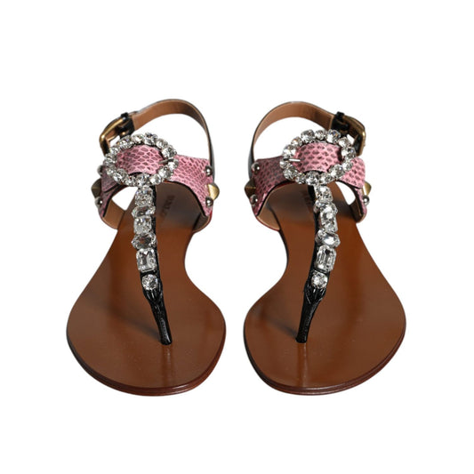 Dolce & Gabbana Leather Ayers Crystal Sandals Flip Flops Shoes