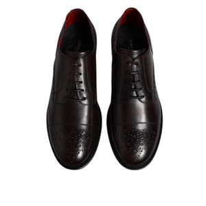 Dolce & Gabbana Maroon Calfskin Leather Derby Men Dress Shoes
