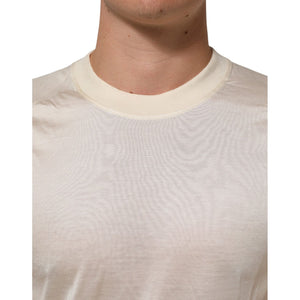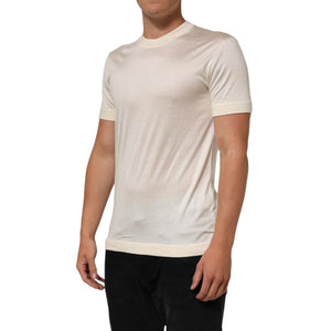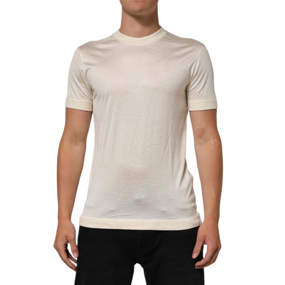Dolce & Gabbana Off White Silk Crew Neck Short Sleeve T-shirt
