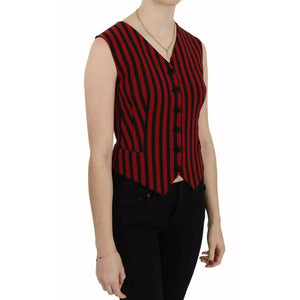 Dolce & Gabbana Red Black Stripe Vest Waistcoat Blouse Top