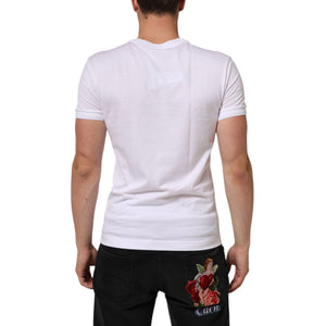 Dolce & Gabbana White Cotton Logo Patch V-neck Tee T-shirt