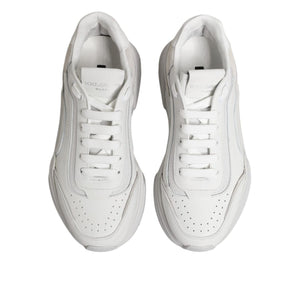• Dolce & Gabbana White Daymaster Low Top Mens Sneakers Shoes, sporty design, luxurious craftsmanship, front view.